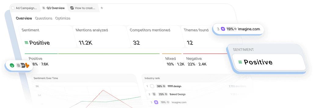 Benchmark your clients against their top competitors across AI engines. Sentiment all in one unified dashboard.